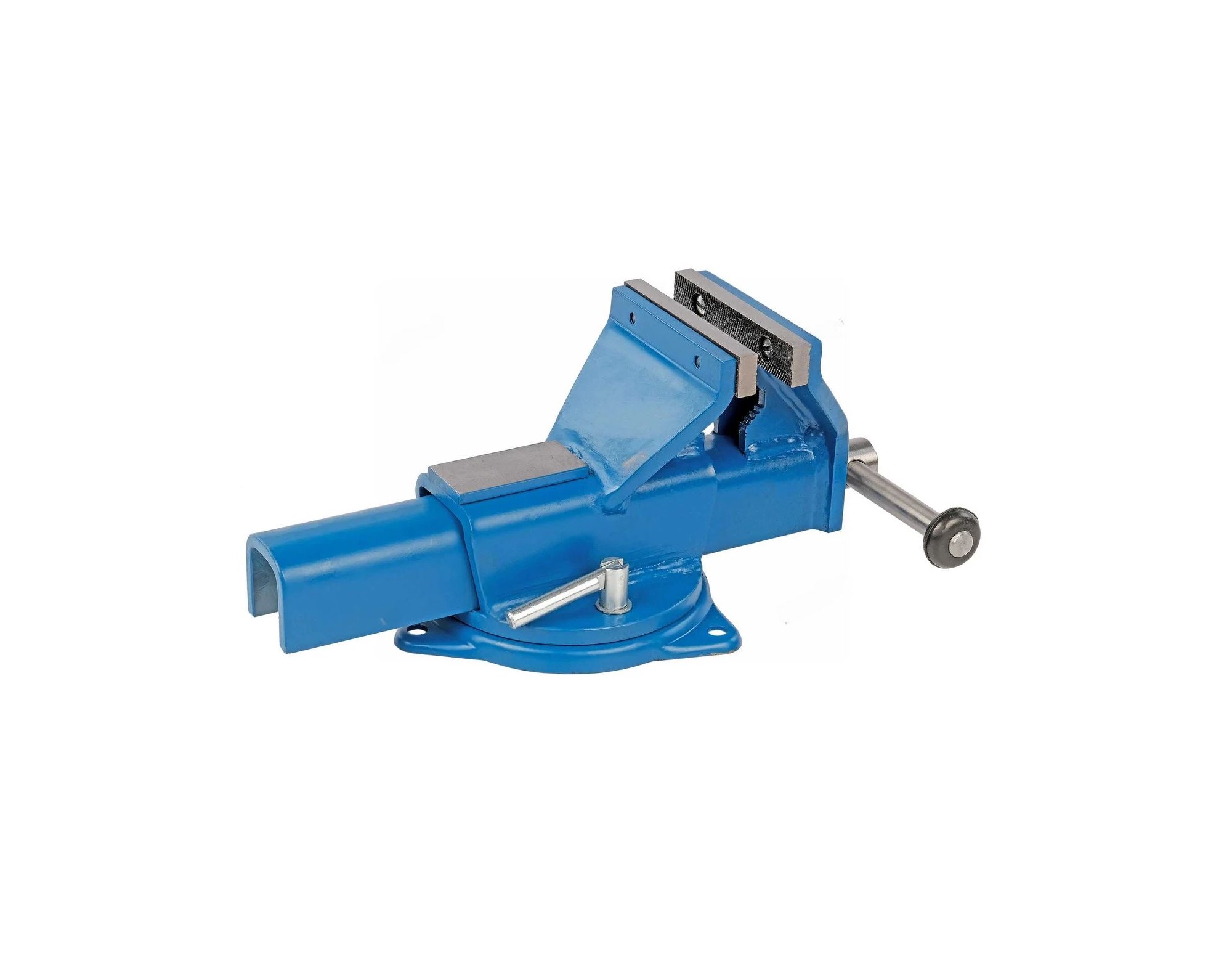 Основание тисков имеет поворотный механизм 360°, фиксация с помощью удобных 2-х зажимных винтов.