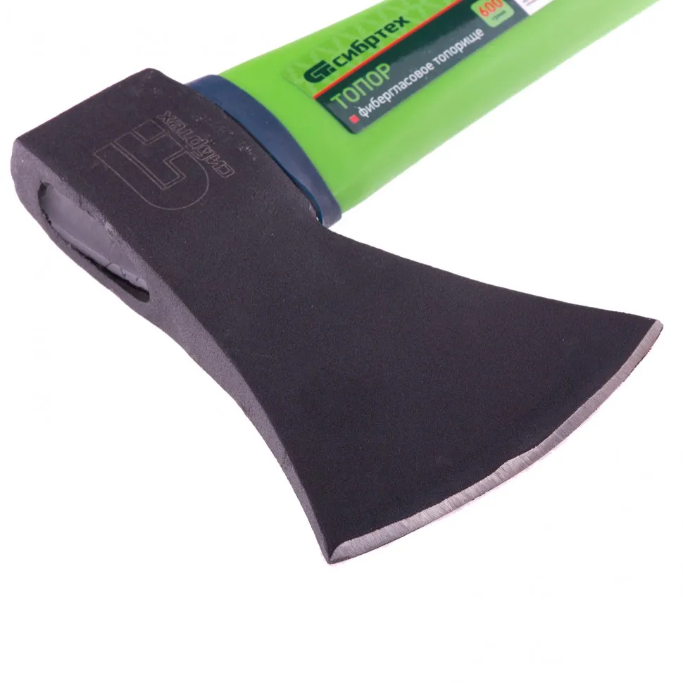 Топор Сибртех 21644 с рабочей частью весом 600 г и фибергласовым топорищем предназначен для рубки, тесания и колки твердой или мягкой древесины. Будет полезен на дачном и сельскохозяйственном участке для заготовки дров, рубки кустов, сучьев, а также выполнения других работ. Полукруглая режущая кромка с углом заточки 20-30 градусов облегчает работу. Топор оптимален для полупрофессионального применения.ПреимуществаПрочность и долговечность — полотно из стали 45 закалено до твердости 48-57 HRC (на высоту до 25 мм от режущей кромки).Качественное топорище — фиберглас устойчив к негативным воздействиям окружающей среды и отличается высокой механической прочностью.Готовность к использованию — инструмент поставляется с уже заточенным лезвием.Надежный хват — благодаря небольшому изгибу и обрезиненным вставкам топорище не выскальзывает из рук.Комфортная работа — фибергласовое топорище гасит вибрации, что в сочетании с малым весом полотна 600 г позволяет уменьшить нагрузку на руки.Компактность — топор с рукояткой длиной 345 мм легко помещается в переноску или рюкзак.