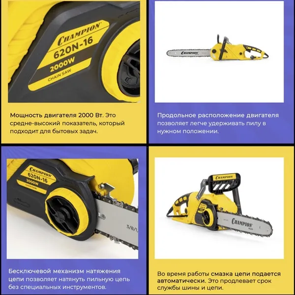 CHAMPION 620N-16 — надёжная электропила для дома, дачи и участка.