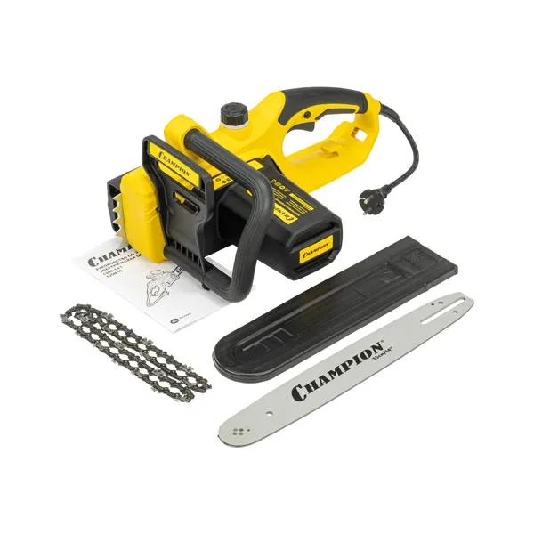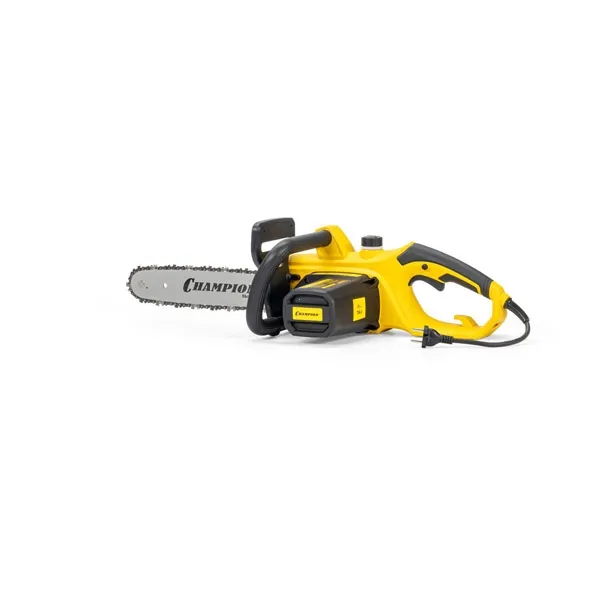 Лёгкая электрическая модель с поперечным расположением двигателя. Пила развивает внушительную мощность в 2000 Вт. Такая мощность позволяет без труда вращать пильное полотно длиной 35 см. Корпус пилы выполнен из прочного пластика яркого желтого цвета. У модели предусмотрен бак для заправки смазочного масла. Это масло подается автоматическим насосом на пильное полотно для улучшения скользящих характеристик и избегания прогорания полотна. Электропила Champion 120N-14/1 комплектуется стальным упором, помогающим при распиловке бревен большого диаметра.