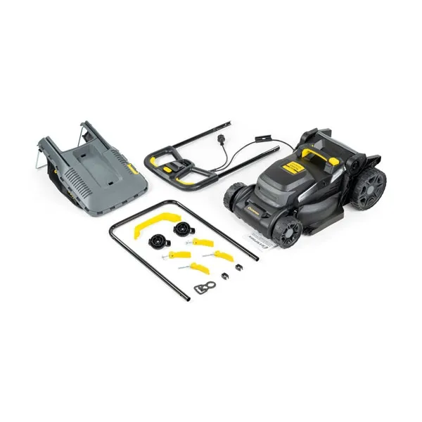 Электрическая газонокосилка Champion EM3716 - ширина скашивания составляет 37 см, а высота скашивания регулируется централизованно и может варьироваться от 25 до 75 мм, есть 7 положений высоты. Газонокосилка имеет эргономичную ручку, которая легко складывается, когда технику нужно перевезти в автомобиле или отправить на хранение. Скошенная трава поступает в травосборник объемом 40 л.