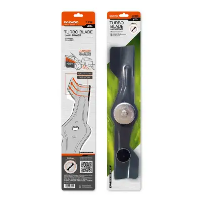 Специальная изогнутая форма ножа и лопастей создают вихревой поток, затягивающий траву