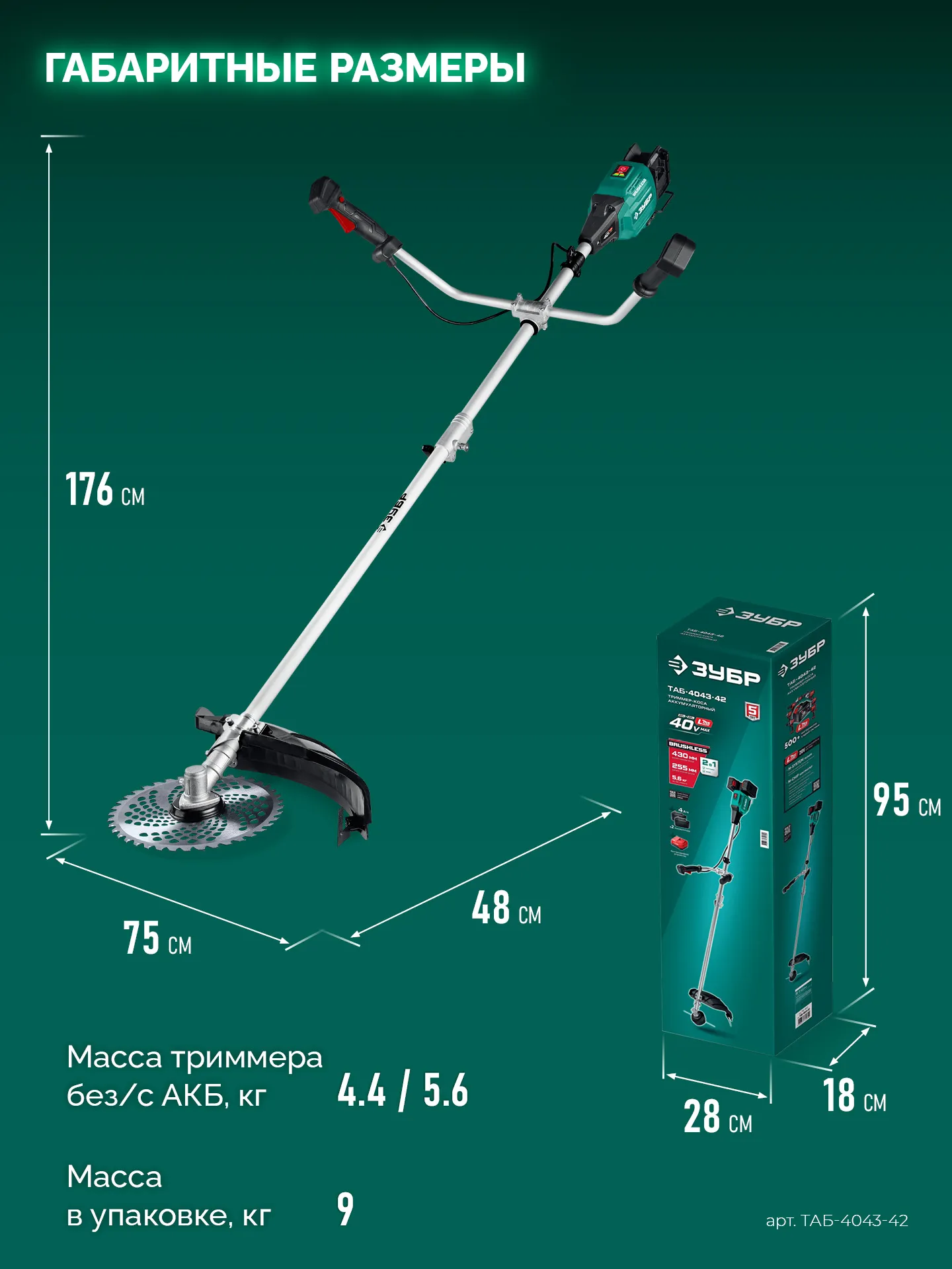 | Ширина скашивания (леска), мм | 430 |
