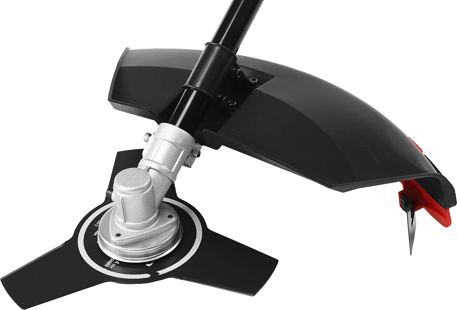 Универсальный инструмент на участке. Способна заменить газонокосилку и триммер, так как оснащается катушкой с леской (для мягкой растительности) и ножом (для грубой растительности). Большая мощность двигателя позволяет косить довольно густую и грубую растительность, а небольшие размеры - добраться до самых труднодоступных мест