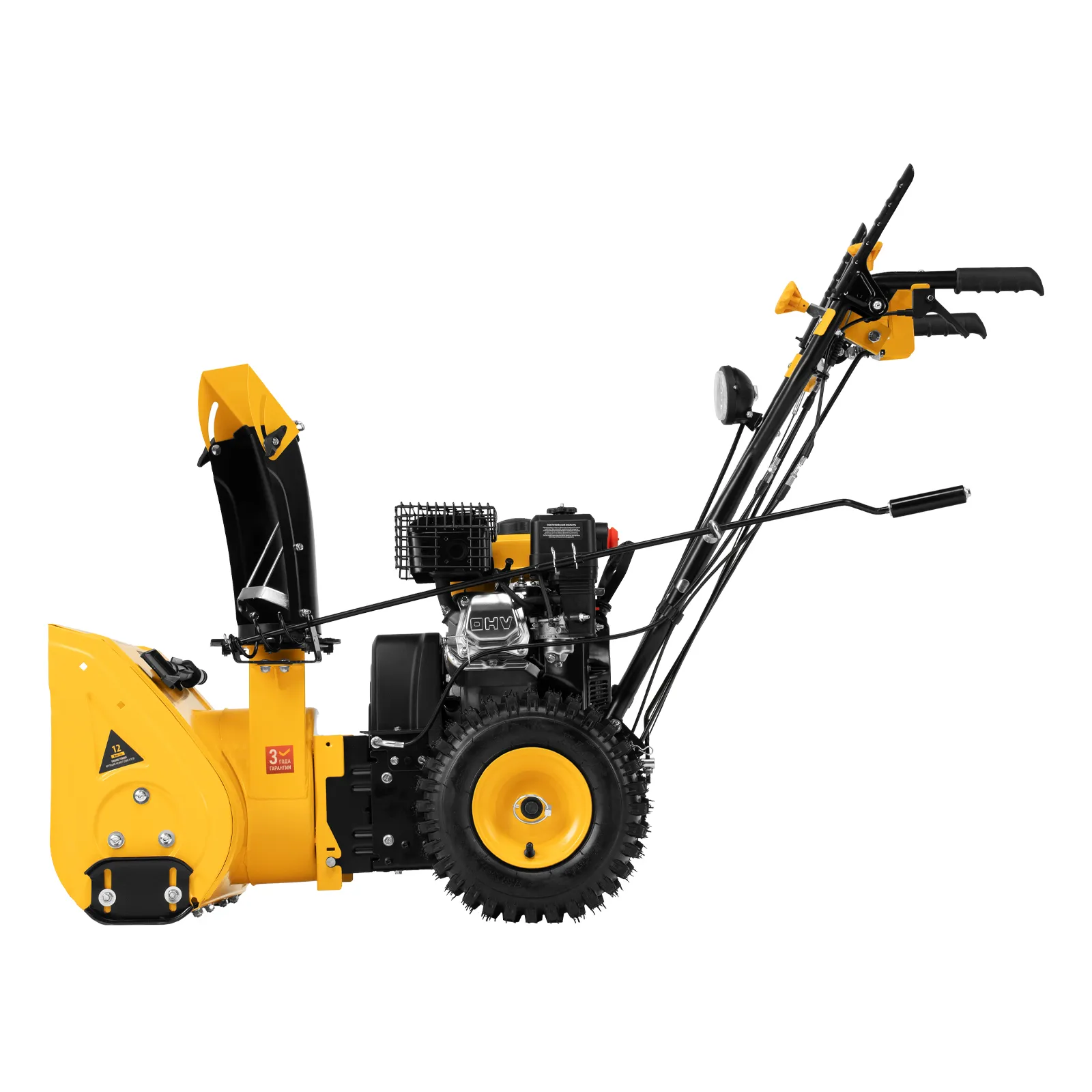 - Эргономичность — для регулировки положения разгрузочного желоба и подметальной насадки не нужно наклоняться.