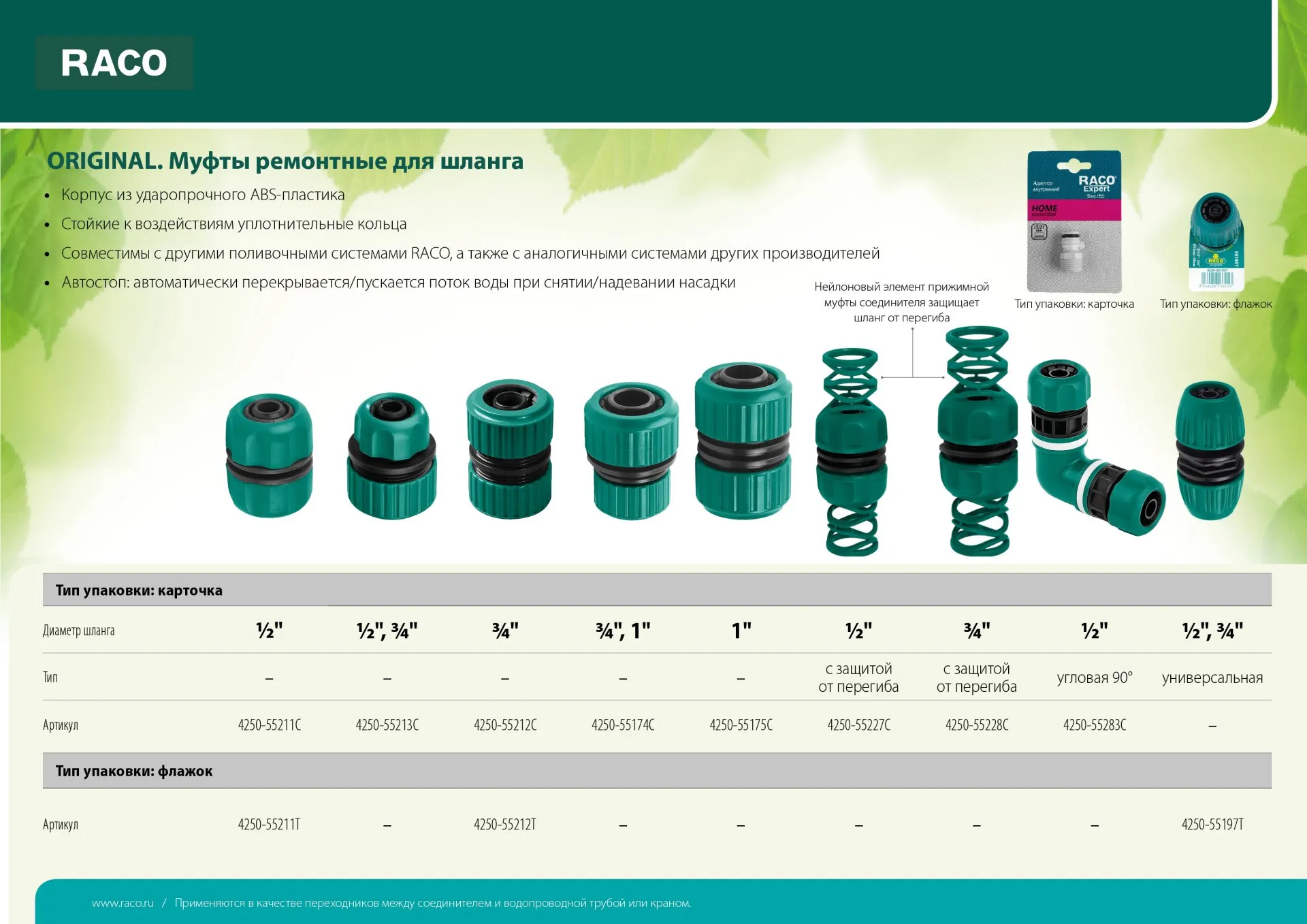 Благодаря использованию современных технологий элементы поливочной системы RACO Original обеспечивает надежное соединение и продолжительный срок службы. Позволяет соединять два шланга под прямым углом.
