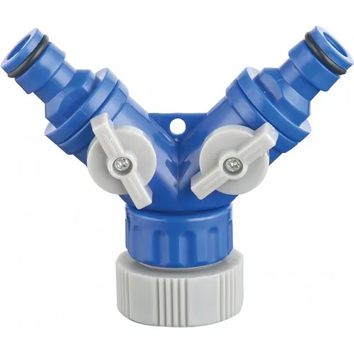 Разделитель для полива двухканальный с кранами и резьбой 3/4"-1" "H-D"