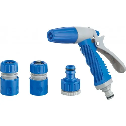 Пистолет-распылитель для полива в комплекте с фитингами для шлангов, набор 4 предмета 1/2" "H-D"