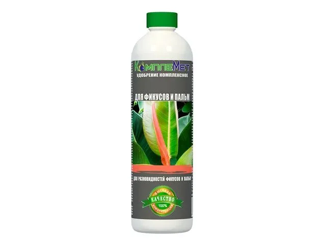 Жидкое комплексное удобрение со сбалансированным соотношением азота, фосфора, калия и других элементов питания, способствующих интенсивности нарастания и окраски листьев, улучшению декоративности фикусов и пальм.