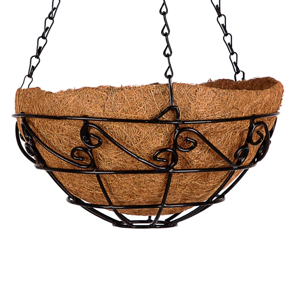 Кашпо подвесное Palisad 69003 диаметром 25 см, с орнаментом и кокосовой корзиной, предназначено для выращивания цветов, создания оригинального дизайна и украшения дома или сада. Подходит для всех типов ампельных и вьющихся растений. Кашпо можно повесить в помещении или на улице.