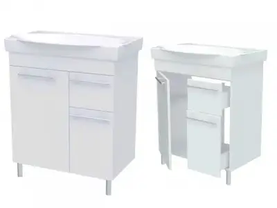 Тумба на 2 алюминиевых ножках и комплектом крепления к стене. Петли с доводчиками, направляющие ящиков Boyard без доводчиков.