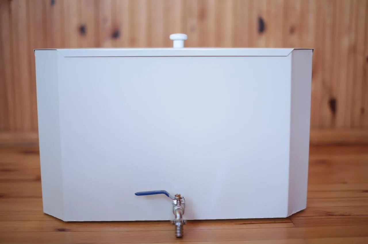 Бак без подогрева воды Объем бака: 20 литров Кран : шаровый металлический Гальваническое покрытие Цвет : Бежевый