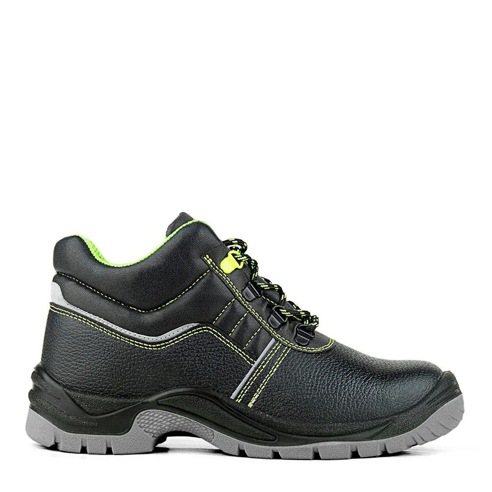 Кожаные ботинки c мягким кантом и глухим клапаном для защиты ног от общих производственных загрязнений в отапливаемых помещениях и на открытом водухе в летний период. Сетчатая подкладка создает комфортные условия носки в течении рабочей смены. Шнуровка, проходящая через металлические петли, обеспечивает комфортную адаптивную посадку. В модели предусмотрена текстильная съемная стелька. Светоотражающие элементы повышают видимость работников в темное время суток, а также на неосвещенной территории. Подошва-двухслойная, маслобензостойкая, литьевого метода крепления. Промежуточный слой изготовлен из ПУ с внутренней амортизирующей вставкой в пяточной части подошвы, способной гасить нагрузки при ходьбе. Нижний ходовой слой- износостойкий, термостойкий ТПУ. Глубина протектора ходового слоя обеспечивает хорошую сцепляемость с поверхностями и препятствует скольжению. Термопластичный подносок обеспечивает защиту пальцев стопы.
