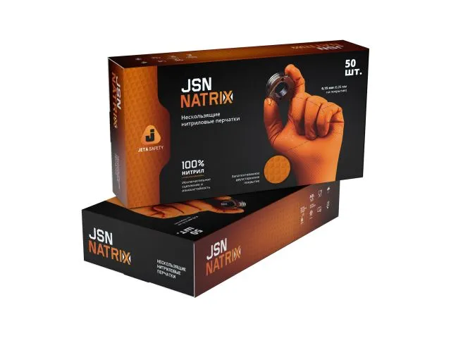 Оранжевые нескользящие нитриловые перчатки Jeta Safety модель NATRIX, длина 240мм, толщина 0,15мм, упаковка 50 шт.