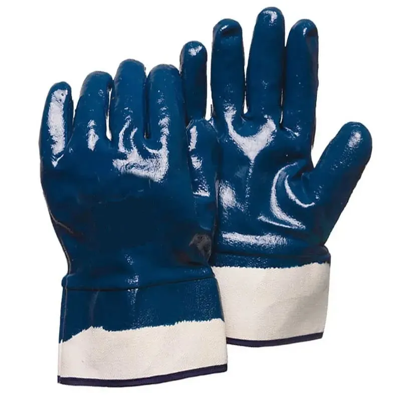 Перчатки из хлопка, с синим нитриловым покрытием (крага) для защиты от минимальных рисков