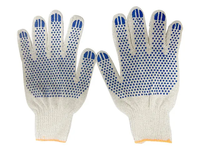 Перчатки рабочие трикотажные х/б белые, 10 класс, с ПВХ покрытием "Точка", 4 нити, 116 текс, х-нить, Ми