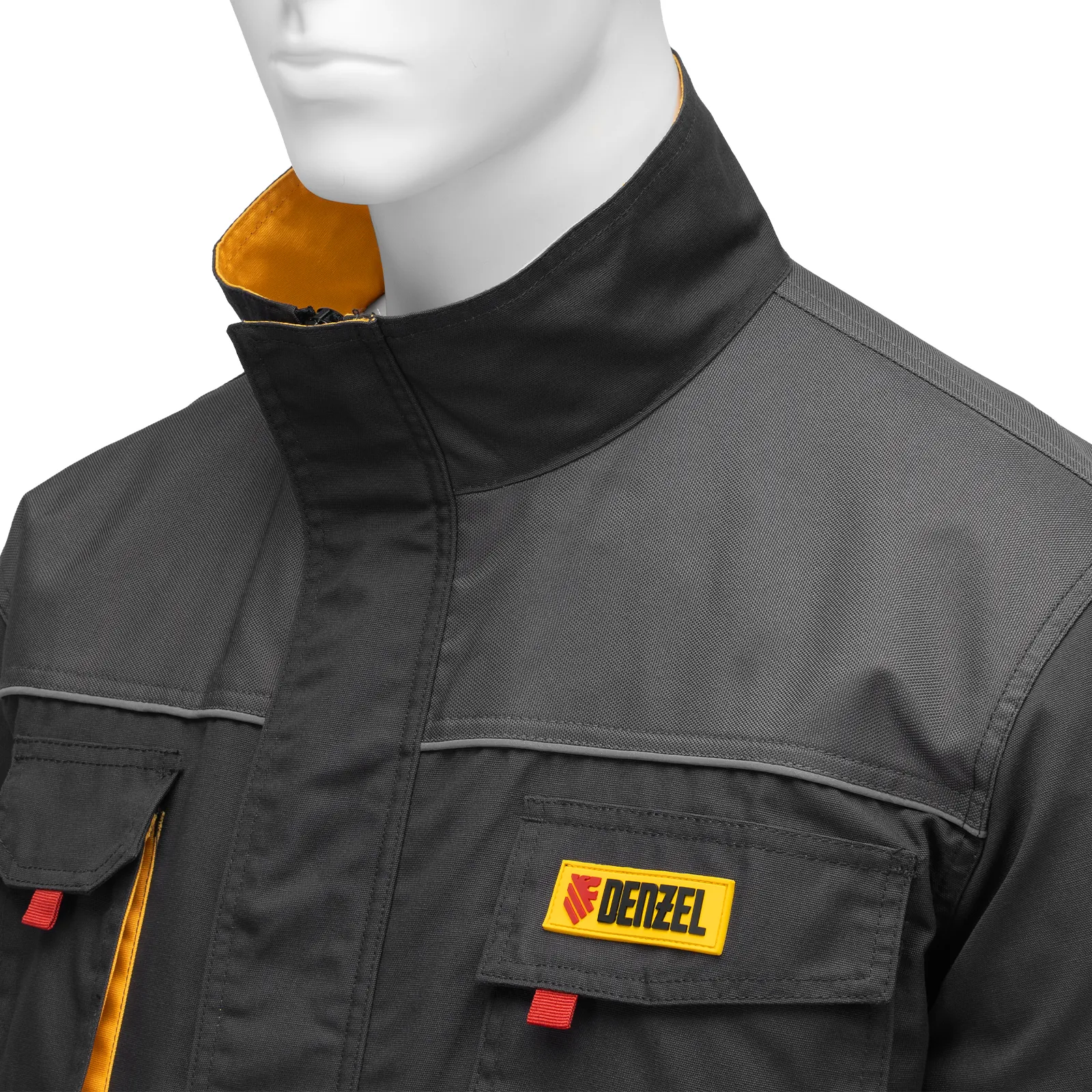 Профессиональная рабочая куртка Denzel 90378 размера L защищает пользователя от общих производственных загрязнений, нетоксичной пыли, ветра и незначительных механических воздействий. Рассчитана на рост 176-182 см и предназначена для использования в теплое время года или в отапливаемом помещении. Куртка изготовлена из ткани плотностью 260 г/м2 (65% полиэстер, 35% хлопок). За счет наличия хлопковых волокон в составе ткань хорошо пропускает воздух и приятна на теле, полиэстер обеспечивает устойчивость к истиранию. Одежда выполнена в практичном темно-сером цвете.