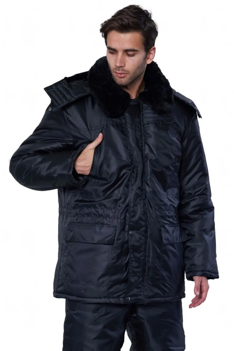 Куртка утепленная с центральной бортовой застежкой на тесьму «молния» и ветрозащитной планкой, застегивающейся на липучку.