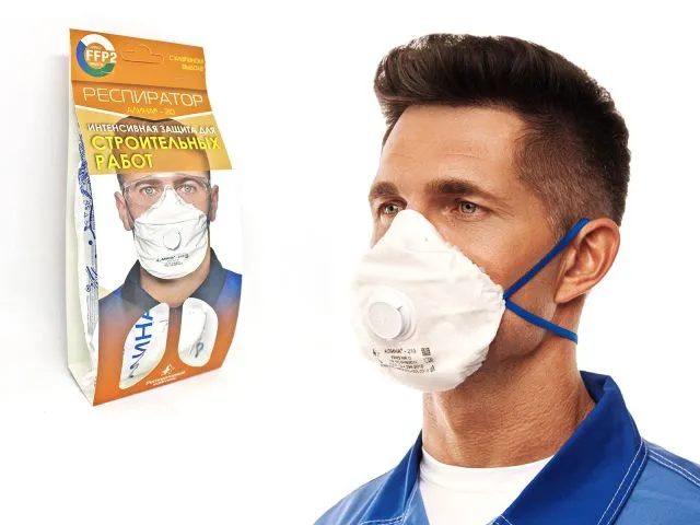 АЛИНА-210 - фильтрующий респиратор второго класса (FFP2) с клапаном выдоха. Защищает от всех видов аэрозолей при их концентрации до 12 ПДК.