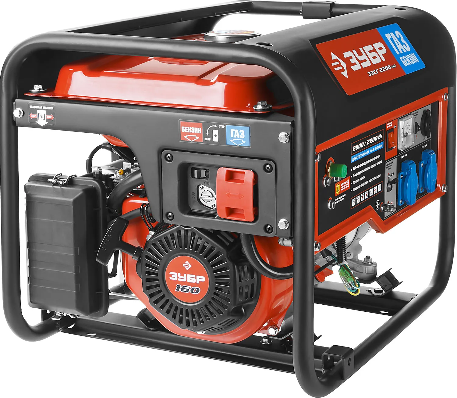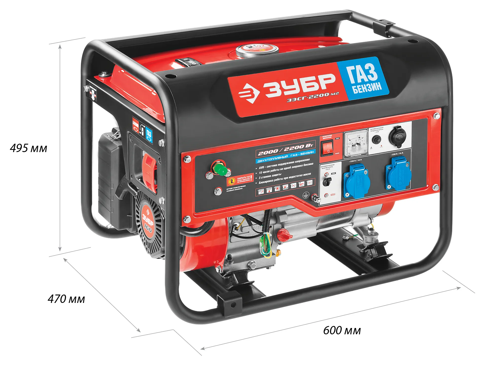 Компактный двухтопливный электрогенератор мощностью 2.2 кВт, работающих как на бензине (АИ-92), так и на газе – при этом, для использования газа не требуется установка дополнительного оборудования. Такой генератор отлично подходит для снабжения маломощных инструментов и оборудования в условиях строительной площадки или автосервиса, а также для обеспечения электричеством небольших дачных домов.