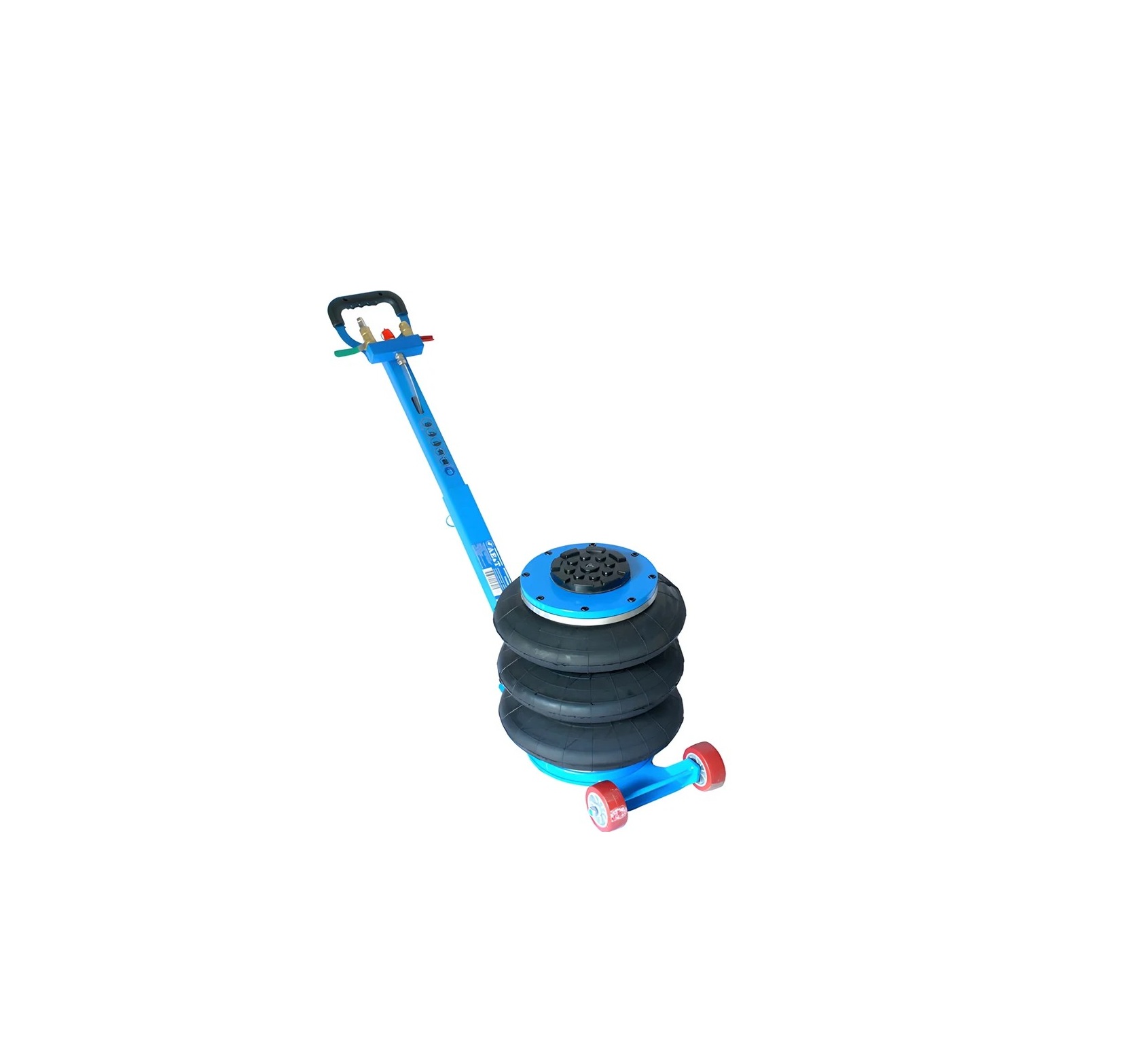 Пневматические домкраты позволяют поднимать автомобили на достаточно большую высоту. Данная модель сконструирована таким образом, что подавать на неё сжатый воздух можно как с компрессора, так и посредством магистрали, проложенной в автосервисе. T08103A компактный, лёгкий, перемещать его несложно за счёт рукоятки и больших колёс. Можно использовать с адаптером 100 мм. Адаптер приобретается отдельно.