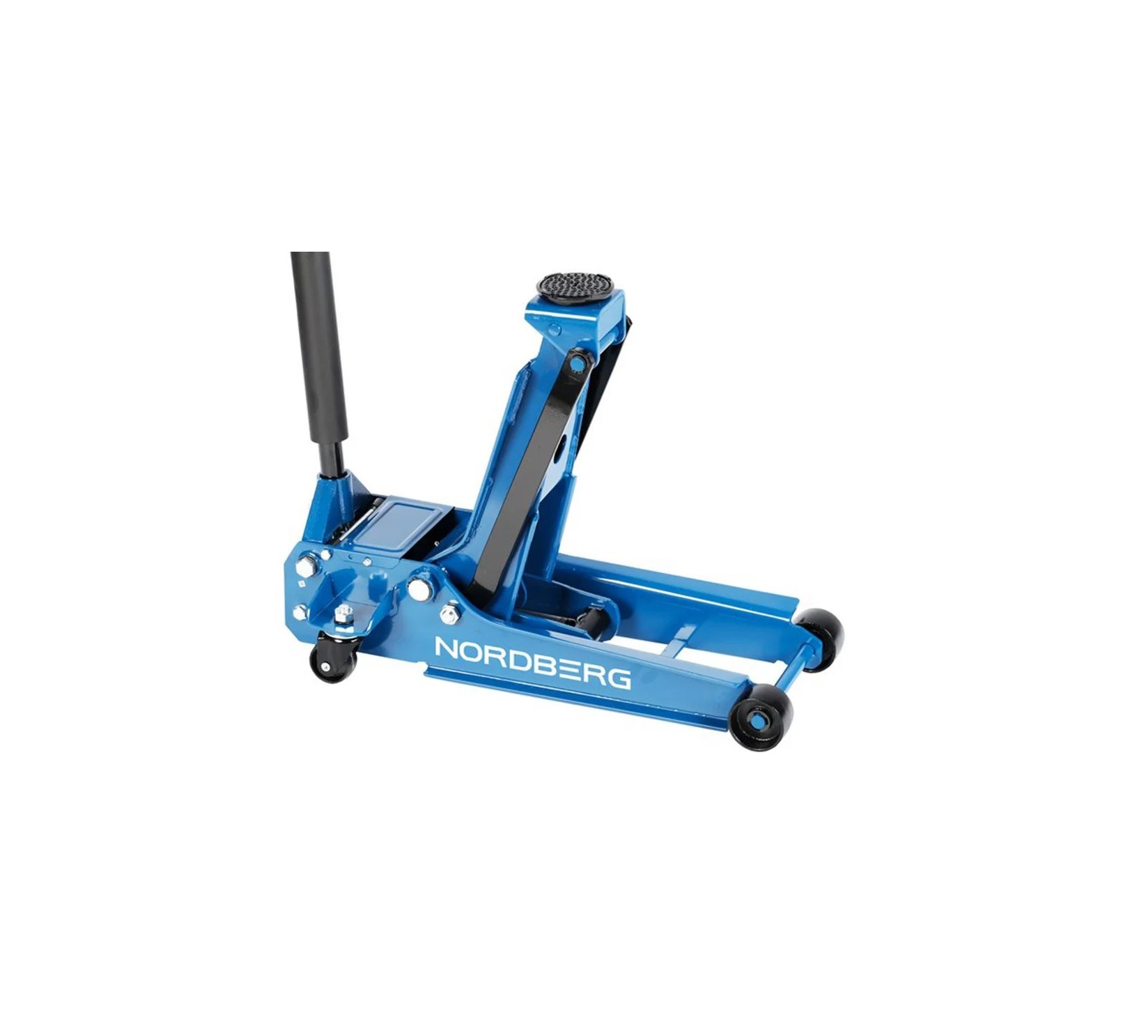 Домкрат предназначен для профессионального использования. Оснащен усиленной конструкцией, низким подхватом и двухштоковым насосом для быстрого подъема. Спуск осуществляется через износостойкий карданный механизм. Опорная площадка снабжена резиновой накладкой, рукоятка с вспененным демпфером защищает лакокрасочное покрытие автомобиля.