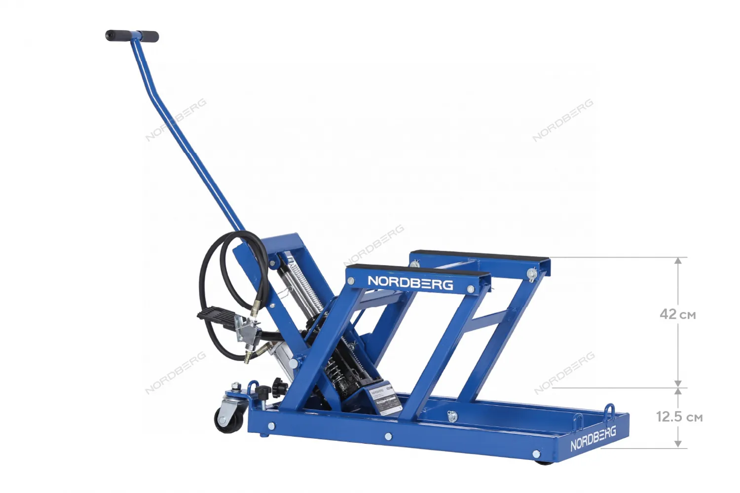 Nordberg N32008 — профессиональный подкатной мотодомкрат для проведения технического обслуживания и ремонта. Применяется в мотомастерских, автосервисах и гаражах.
