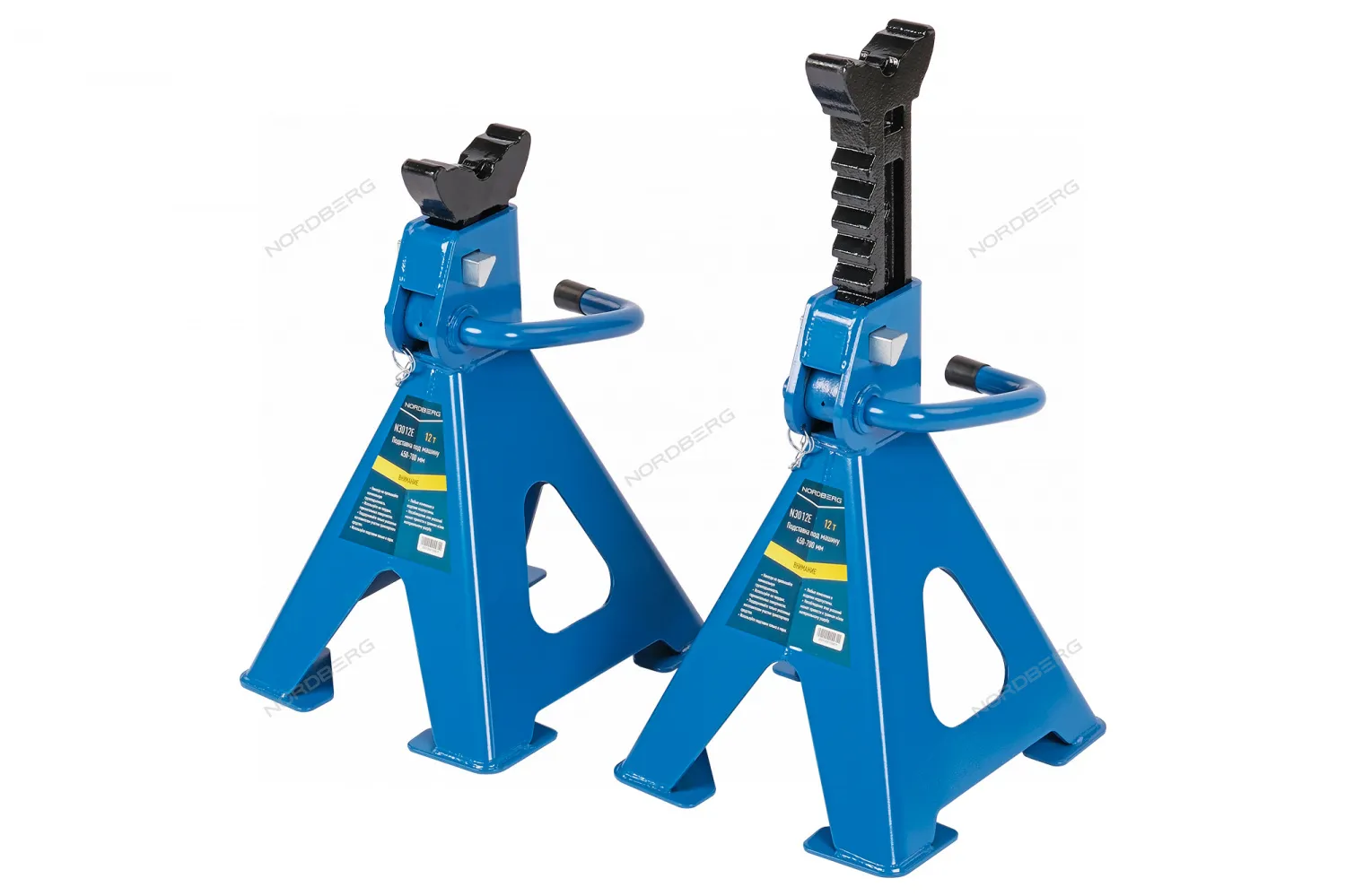 Страховочная подставка NORDBERG 12т., 2 шт. N3012E для фиксации и страховки при поднятии автомобиля, для выполнения ремонтных работ. Высота подхвата регулируется.