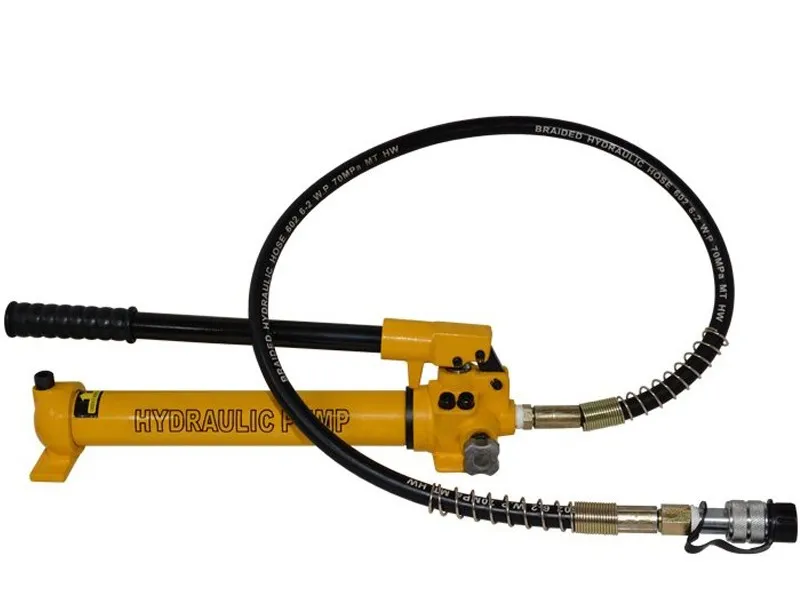 Насосы ручные гидравлические односторонние <b>TOR HHB серия 700</b> с двухступенчатой конструкцией.<br> Насос гидравлический применяется в качестве привода для различного гидравлического оборудования: домкратов, гидравлических опрессовщиков, гидроцилиндров одностороннего действия, прессов и других устройств.<br> <br> Соединение: быстроразъемное R2 3/8 с пылезащитным колпачком<br> <br> TOR HHB-700 - укомплектован рукавом высокого давления длиной 1,8 м<br> TOR HHB-700A - укомплектован рукавом высокого давления длиной 1,8 м. Увеличенный резервуар для масла. Полезный объем масла -2700 см3.<br> TOR HHB-700B - укомплектован рукавом высокого давления длиной 1,8 м, манометром, переходником для манометра.<br> TOR HHB-700C - укомплектован рукавом высокого давления длиной 1,2 м.<br> TOR HHB-700E - укомплектован рукавом высокого давления длиной 1,8 м. Увеличенный резервуар для масла. Полезный объем масла -2000 см3.<br>
