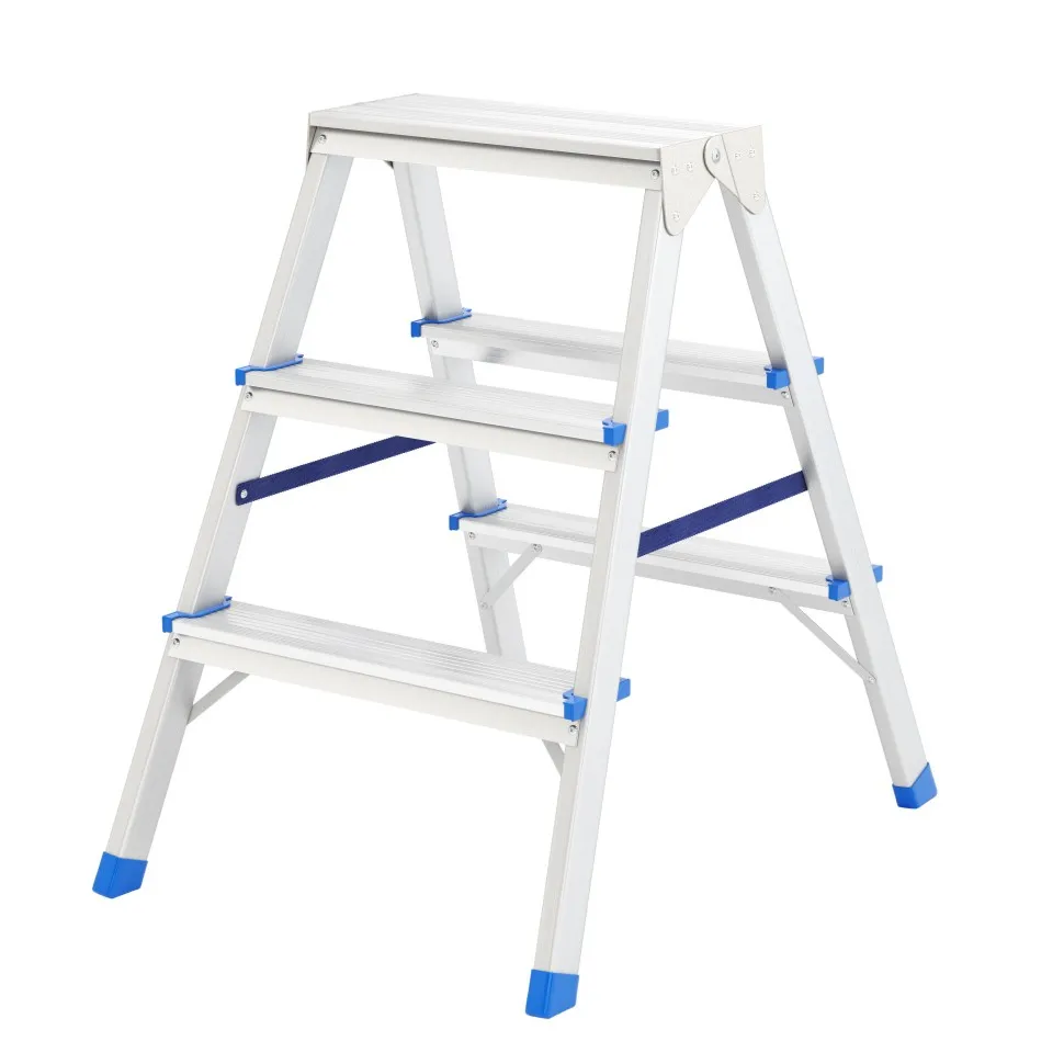 Прочная алюминиевая рама из прессованного профиля прямоугольного сечения.Устойчивая конструкция и надежная фиксация в рабочем положении.Широкие профилированные ступени для длительной работы на высоте с противоскользящим рифлением.Пластиковые рифленые наконечники на основании опорных направляющих предотвращают скольжение на рабочей поверхности, и не повреждают покрытие пола.Устойчива к неблагоприятным внешним воздействиям, таким как коррозия.Удобна для хранения и транспортировки.Легкий вес в отличие от стальных стремянок.Используется в быту - дом, сад, гараж, а так же коммунальной и строительной деятельности.