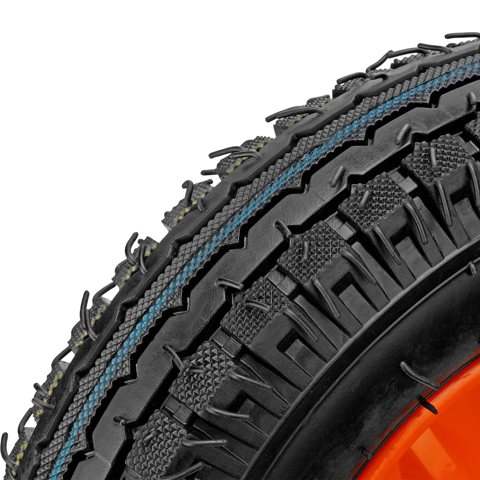 Пневматическое колесо 4.00-8 Palisad 69081 диаметром 400 мм, с усиленной шиной 8PR, на подшипниках, с длиной оси 90 мм и посадочным диаметром 20 мм, устанавливается на тачки для перемещения грузов, например, Palisad 68923, 689233, 68937, Сибртех 689643. Усиленная восьмислойная шина подходит как для садовых, так и для строительных тачек. Стальные шариковые подшипники обеспечивают плавный ход и возможность передвижения по неровной поверхности.
