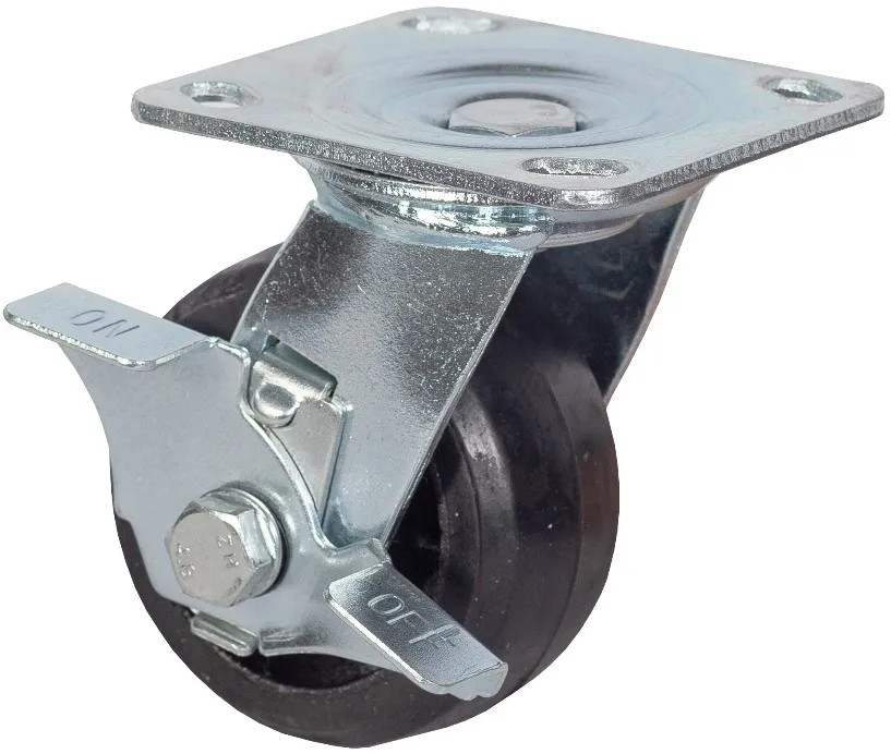 Колесо большегрузное поворотное с тормозом обрезиненное 150 мм - SCdb 63 — это колесо повышенной грузоподъемности, предназначенное для установки на тяжёлое промышленное оборудование и технику. Имеет усиленную конструкцию и износостойкое покрытие.