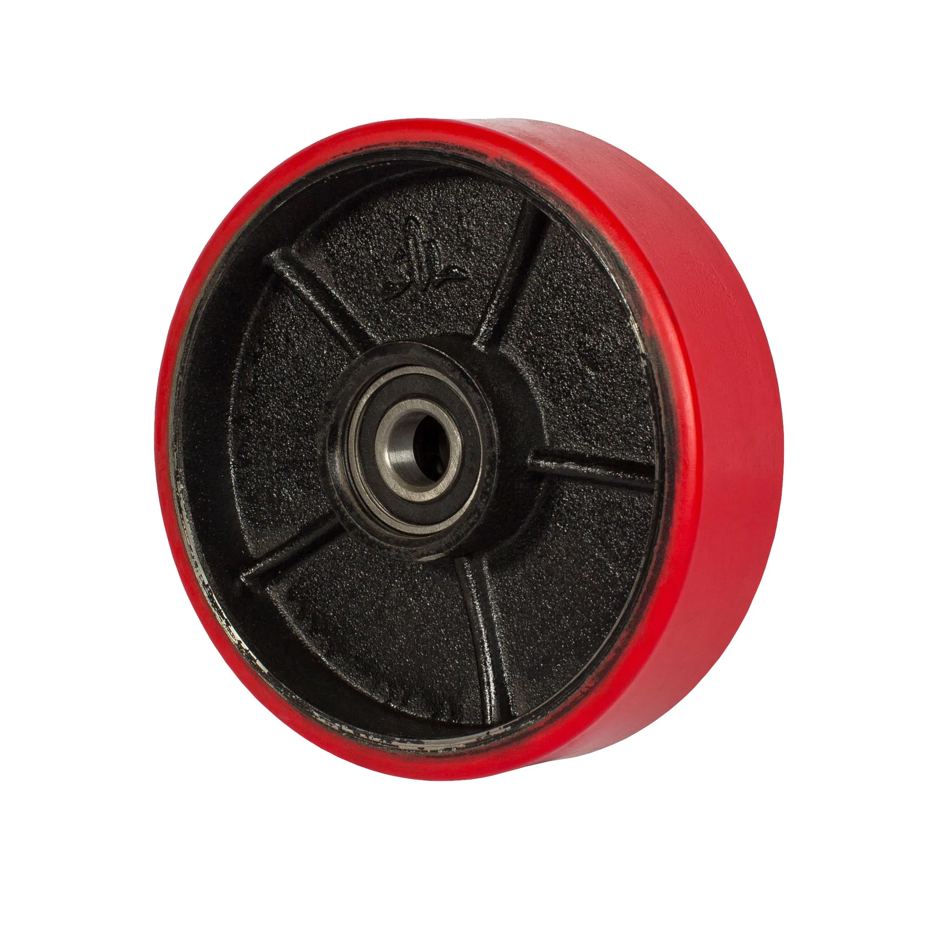 Колесо гидравлической тележки с подшипниками, полиуретан, 160 х 50мм — это универсальное колесо для передвижения техники и оборудования.