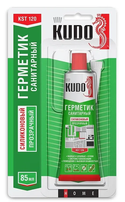 Герметик KUDO KST-120 силиконовый санитарный прозрачный, в тюбике 85 мл