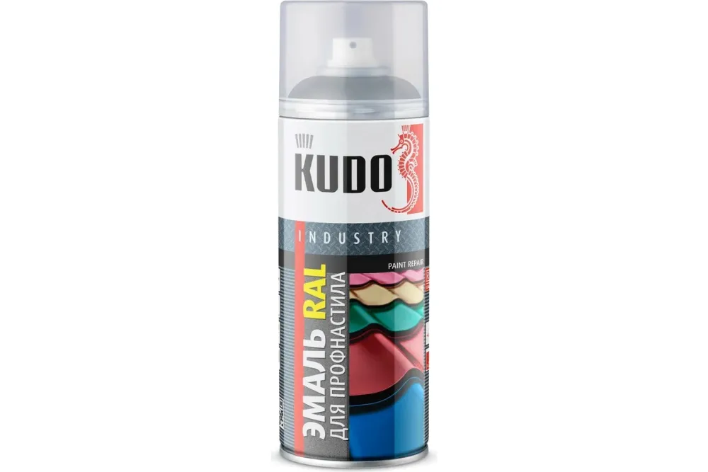 Эмаль для металлочерепицы KUDO RAL 7024 серый графит используется при монтаже водосточных и вентиляционных систем, металлочерепицы, профнастила и торгового оборудования для устранения дефектов окрашивания и повреждений полимерного покрытия.