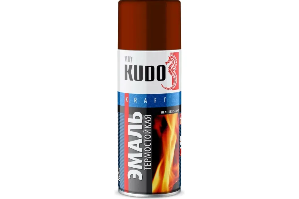 Эмаль KUDO термостойкая 5006, красно-коричневая, 520 мл KU-5006 служит для обработки поверхностей из металла, которые находятся под воздействием повышенных температур до 650°С. Применяется для окрашивания деталей выхлопной системы автомобилей, частей трубопроводов и паропроводов, элементов водонагревательного и котельного оборудования.