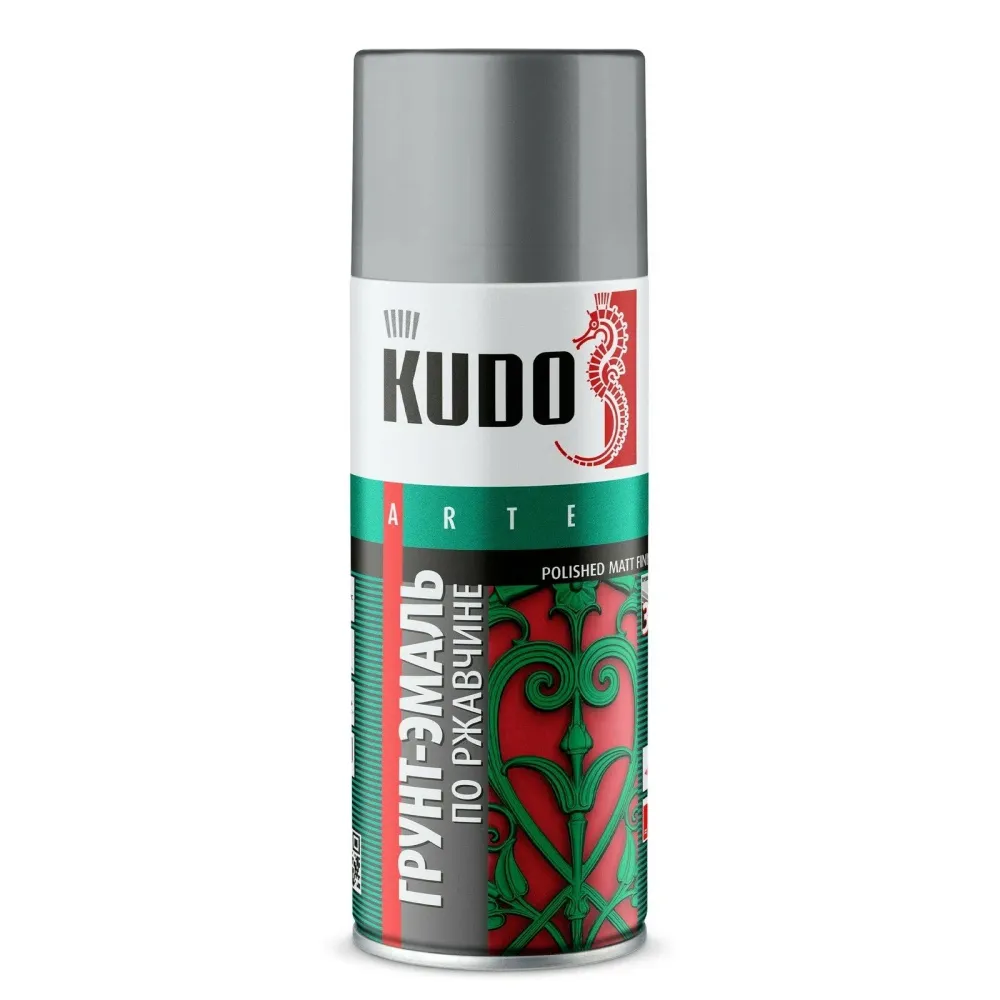 Грунт-эмаль по ржавчине KUDO серая RAL 7042 520 мл KU-317042 предназначена для окрашивания изделий из сплавов чёрных металлов, которые подвержены коррозии и уже заржавели. Продукт сочетает в себе свойства нейтрализатора коррозии, грунта и декоративной эмали, что позволяет значительно сократить время для получения покрытия.