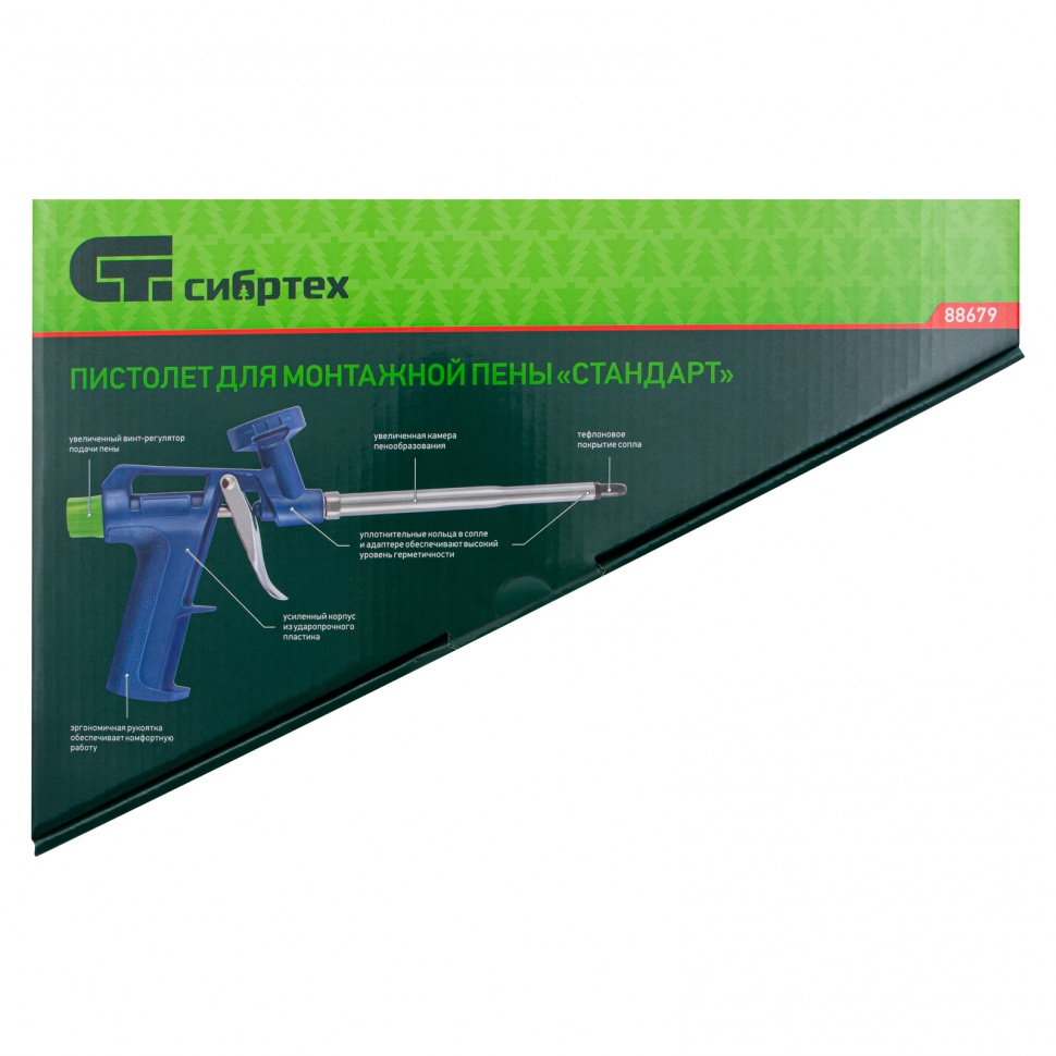 Пистолет для монтажной пены Сибртех «Стандарт» 88679 используется для герметизации швов, трещин, стыков, проемов и пр. Предназначен для работ с монтажной пеной в баллонах, имеющих резьбовой соединитель.
