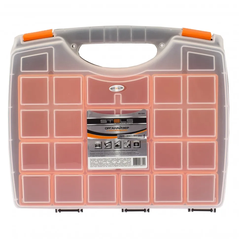 Органайзер с контейнерами Stels 90724 размером 325 х 280 х 60 мм, из пластика, пригодится в хозяйстве и мастерской для хранения крепежных элементов, принадлежностей для рукоделия, снастей и т.д. Он обеспечивает быстрый доступ к предметам, не допуская их перемешивания и утери.ПреимуществаКорпус из высококачественного полипропилена гарантирует сохранность вещей, т.к. не допускает попадания влаги и пыли.Контейнеры можно доставать и переставлять для удобства хранения различных по размерам предметов, а также для размещения под рукой деталей на рабочем месте.Органайзер имеет 13 секций, поэтому вмещает большое количество деталей.Защелки и ручка обеспечивают удобство транспортировки органайзера.