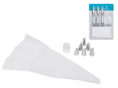Кулинарный мешок является незаменимый инструментом для работы с кремом. Используется для оформления кондитерских изделий, таких как торты, кексы, безе, а также создания фигурных украшений и узоров из крема. Изделие выполнено из высококачественных материалов в нескольких цветовых оттенках. Мешок легко очищается от остатков крема и не занимает много места на кухне. В комплекте предусмотрено 6 насадок с различными наконечниками.