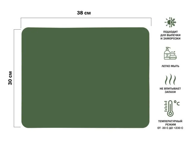 Силиконовый коврик для выпечки 38?30 см - практичный и многоразовый аксессуар для вашей кухни. Идеально подходит для приготовления выпечки, раскатки теста, работы с карамелью или шоколадом. Благодаря антипригарной поверхности продукты не прилипают, а значит - меньше масла и проще очистка. Выдерживает температуру от -40 до +230°C, подходит для духовки, морозилки и микроволновки. Легко сворачивается и не занимает много места при хранении.
