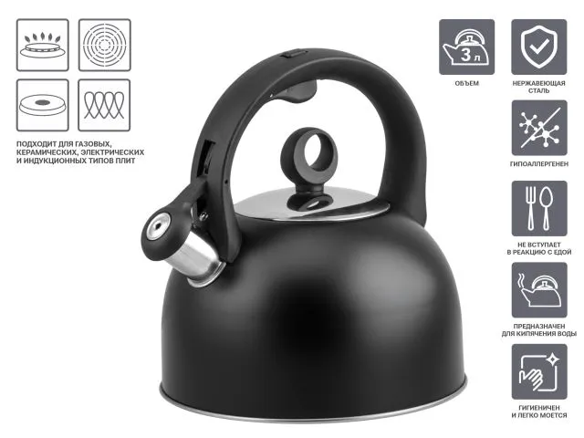 Пищевая нержавеющая сталь, из которой изготовлен чайник, соответствует всем токсикологическим и гигиеническим нормам, не выделяет в воду вредных веществ и не отражается на ее вкусе.