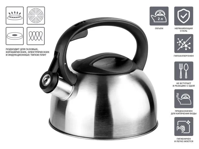 Пищевая нержавеющая сталь, из которой изготовлен чайник, соответствует всем токсикологическим и гигиеническим нормам, не выделяет в воду вредных веществ и не отражается на ее вкусе.