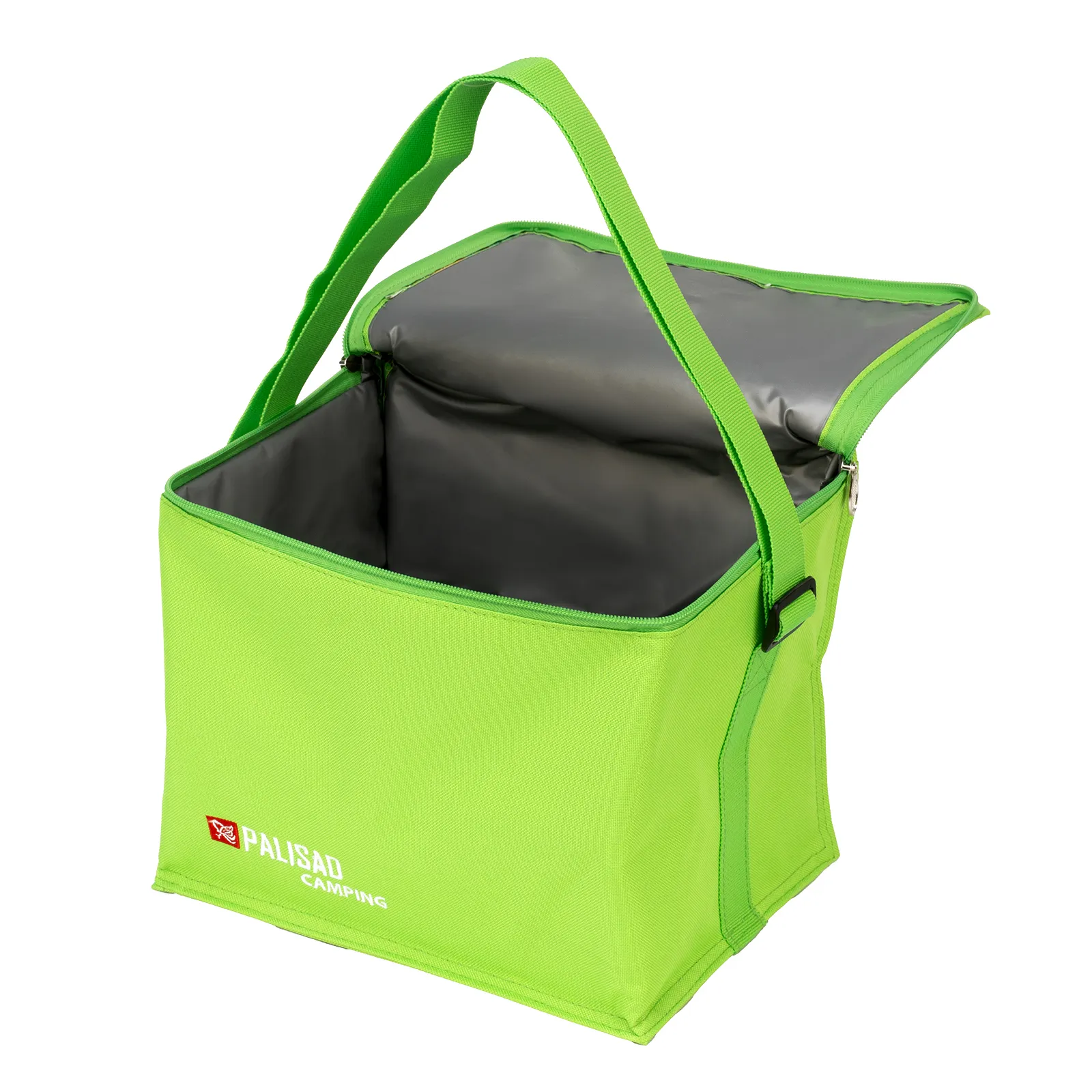 Сумка-холодильник Palisad Camping 69598 размером 28 х 20 х 24 см сохранит продукты и напитки прохладными в жару. Для этого в комплекте имеется пакет с охлаждающим гелем. Дополнительно можно приобрести аккумуляторы холода Palisad 69601. Теплоизоляционный слой из высококачественных материалов PEVA, EPE эффективно поддерживает температуру внутри сумки. Изделие пригодится для перевозки продуктов и напитков, также его можно взять с собой на пикник.