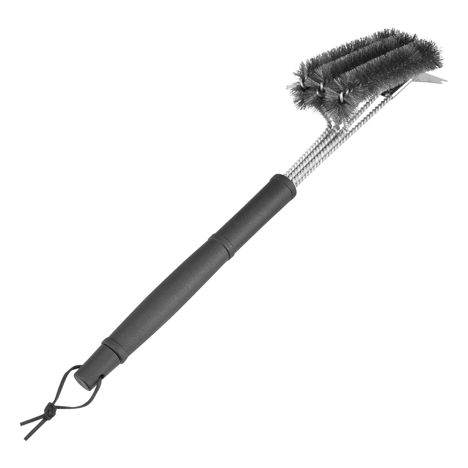 Щетка Palisad Camping 69702 длиной 46,5 см, — инструмент для чистки гриля 2 в 1 (щетка + скребок). Эффективно очищает хромированные и нержавеющие решетки-гриль, шампуры и барбекю от остатков пищи и нагара. Длина щетки составляет 17 см, трехрядная щетина увеличивает площадь очистки, упрощая работу. Щетка пригодится на пикнике и на даче.