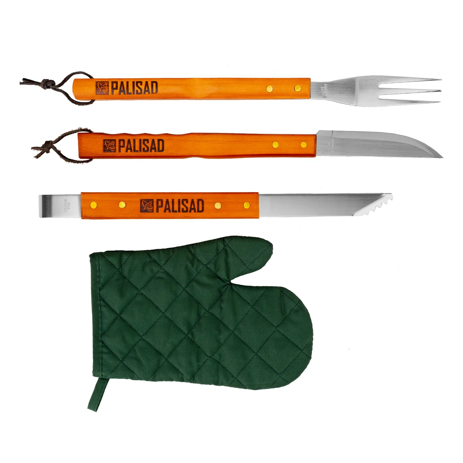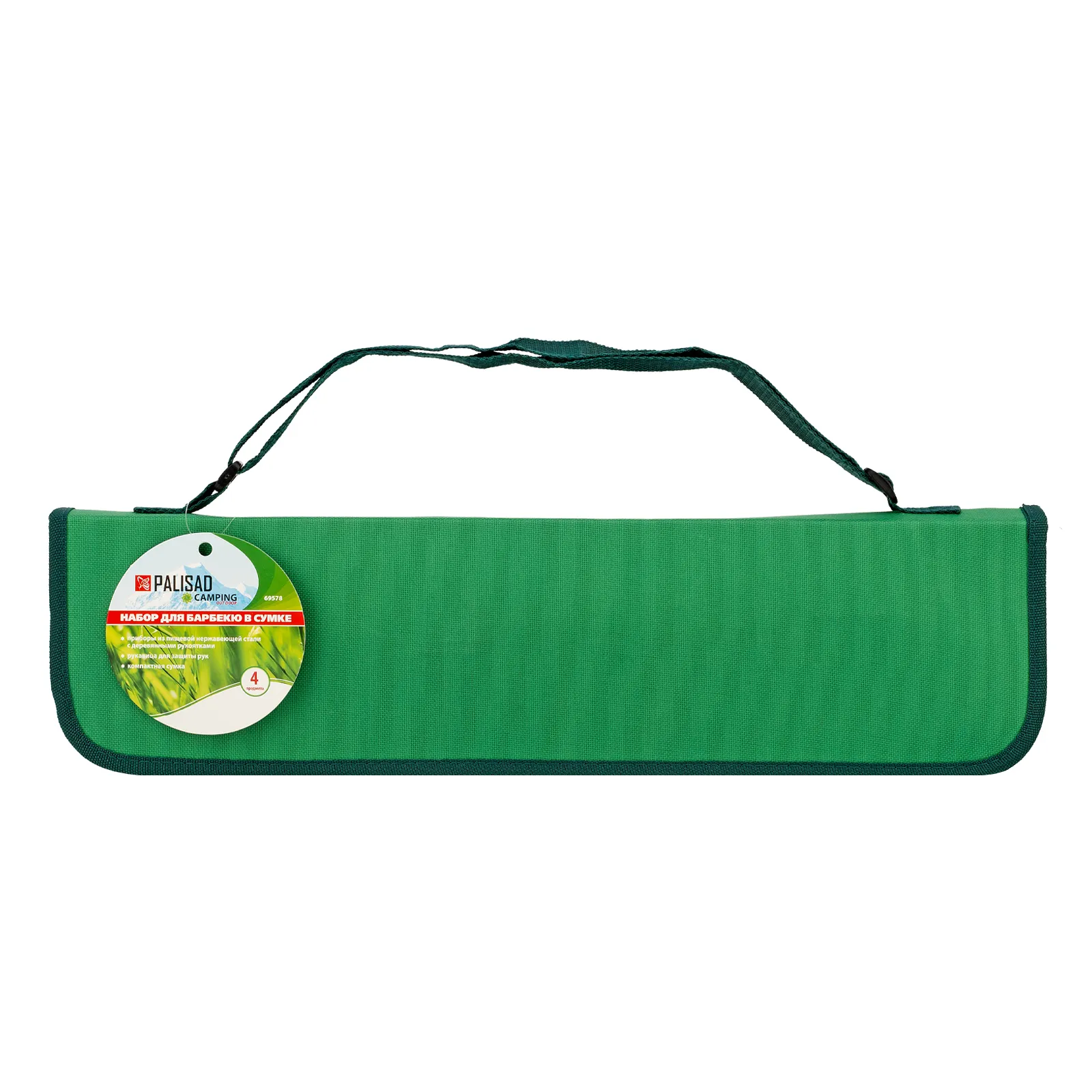 Набор приборов для барбекю Palisad Camping 69578 содержит 4 предмета в сумке, которые повышают безопасность и удобство приготовления блюд на мангале. Пригодится любителям пикников и дачникам. В наборе есть все необходимое: вилка для захвата продуктов и проверки степени их готовности, щипцы для переворачивания, рукавичка для удержания горячих предметов.