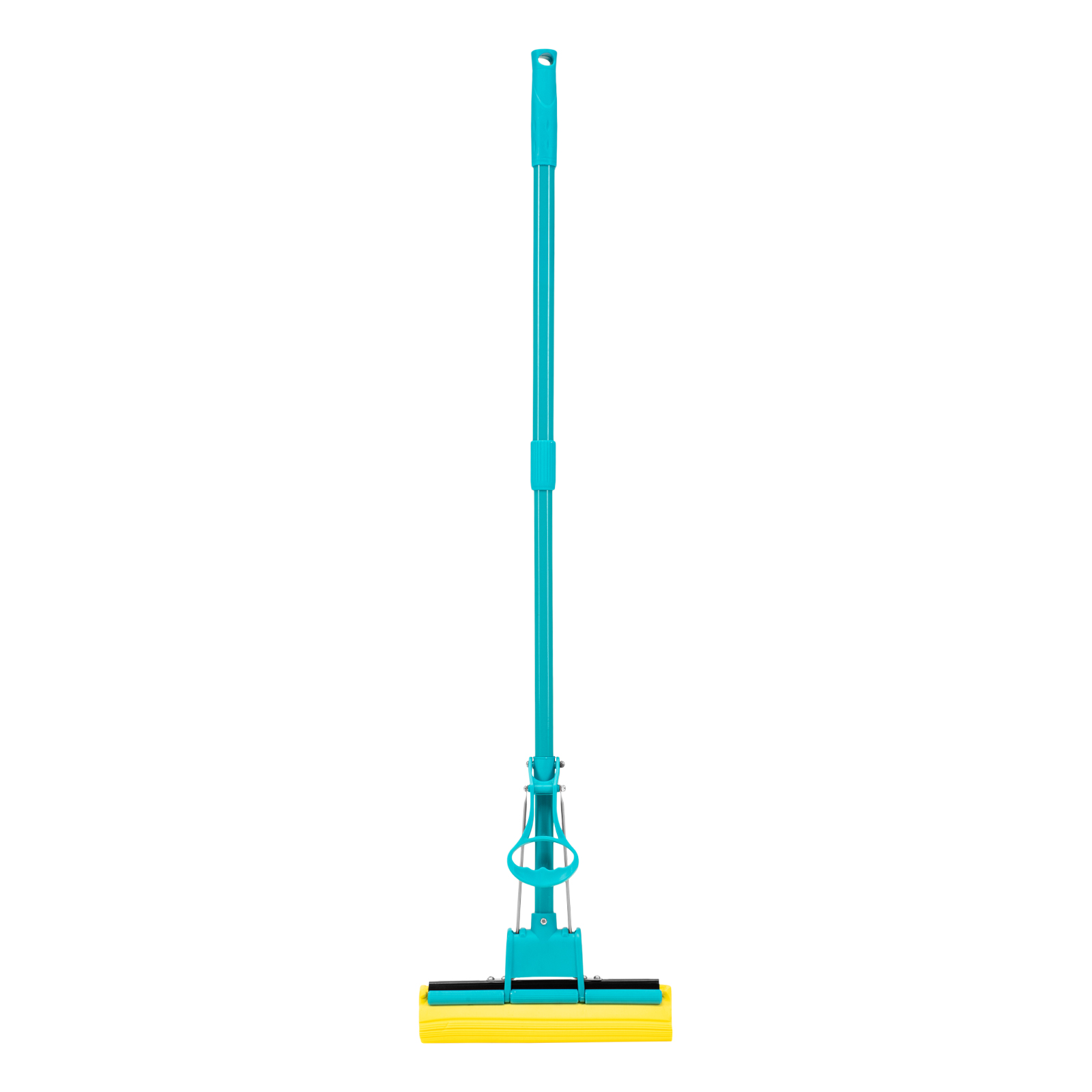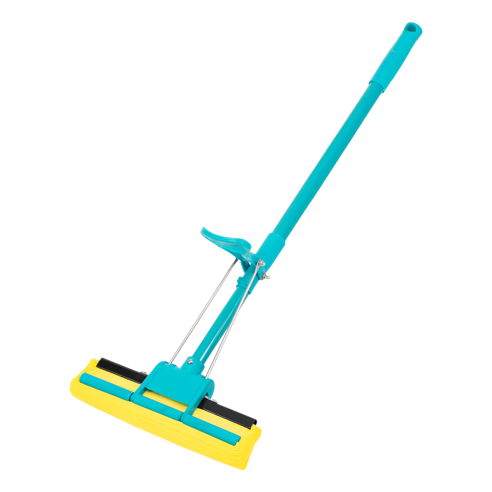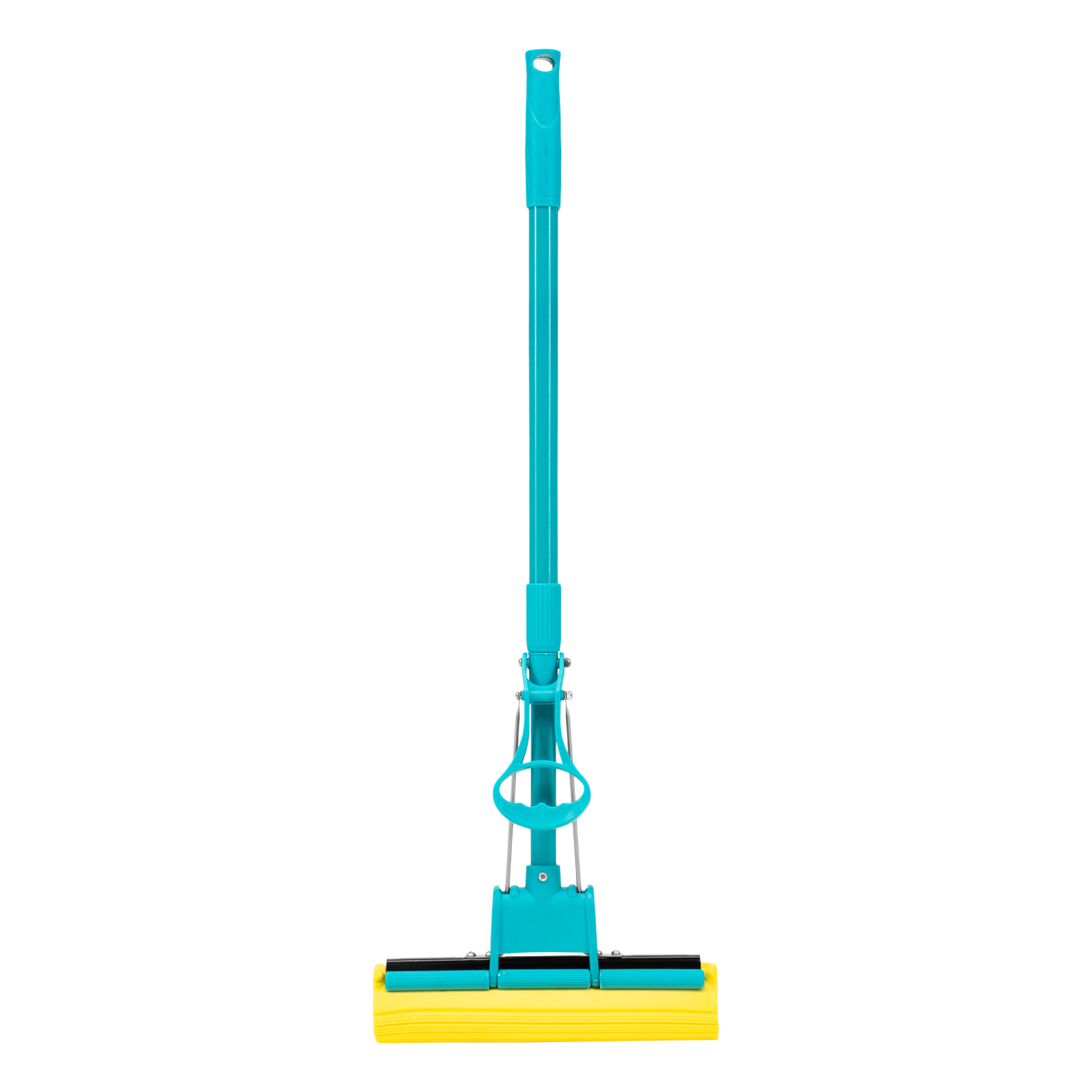 Бирюзовая отжимная швабра Palisad Home 93581 длиной 110 см, с телескопической рукояткой и полимерной губкой размером 26 x 5,5 x 6 см, используется для проведения влажной уборки. Губка из поливинилацетата хорошо впитывает влагу и эффективно удаляет загрязнения с напольных покрытий всех видов. Отжимной механизм позволяет исключить контакт рук с грязной водой, моющими средствами и обрабатываемой поверхностью.