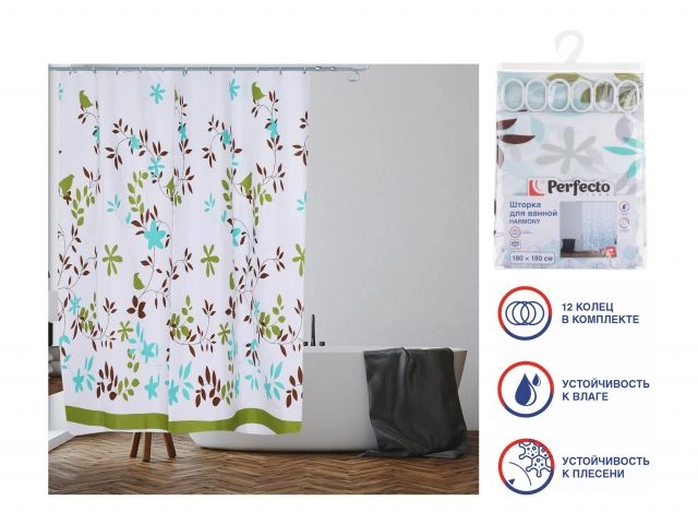 Шторка для ванной, 180x180 см, Harmony, флора, PERFECTO LINEA